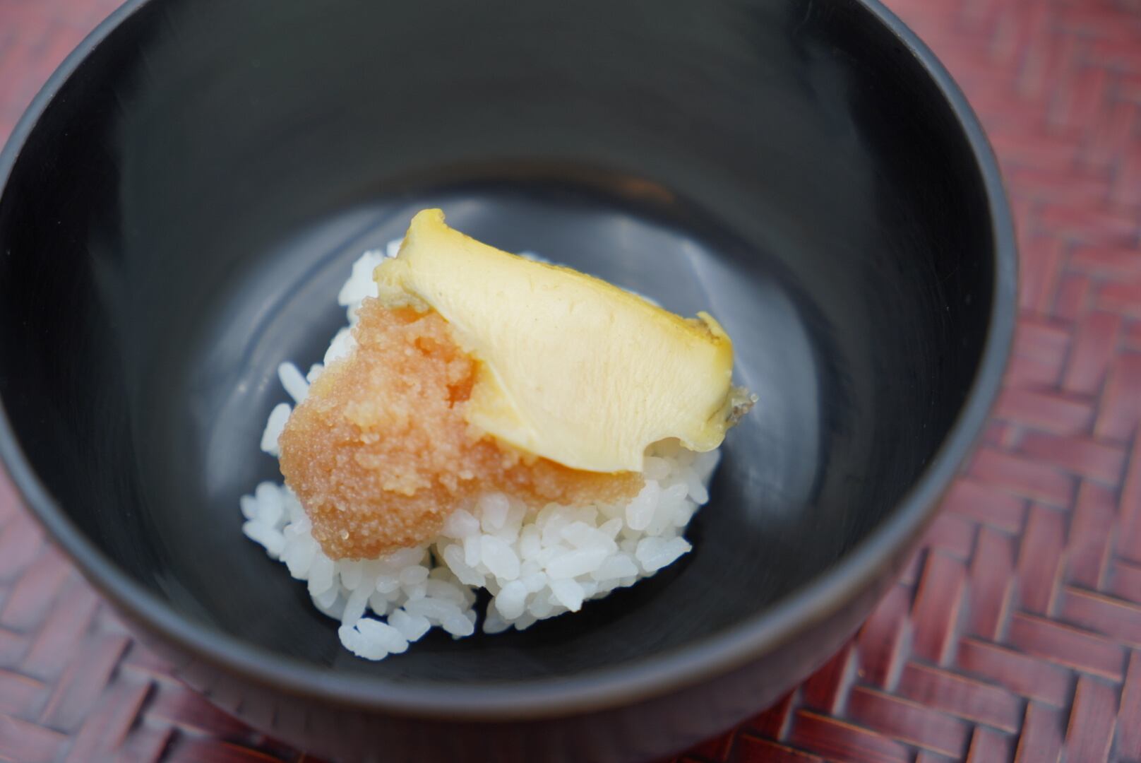 蒸し煮にした鮑と明太子を合わせました。